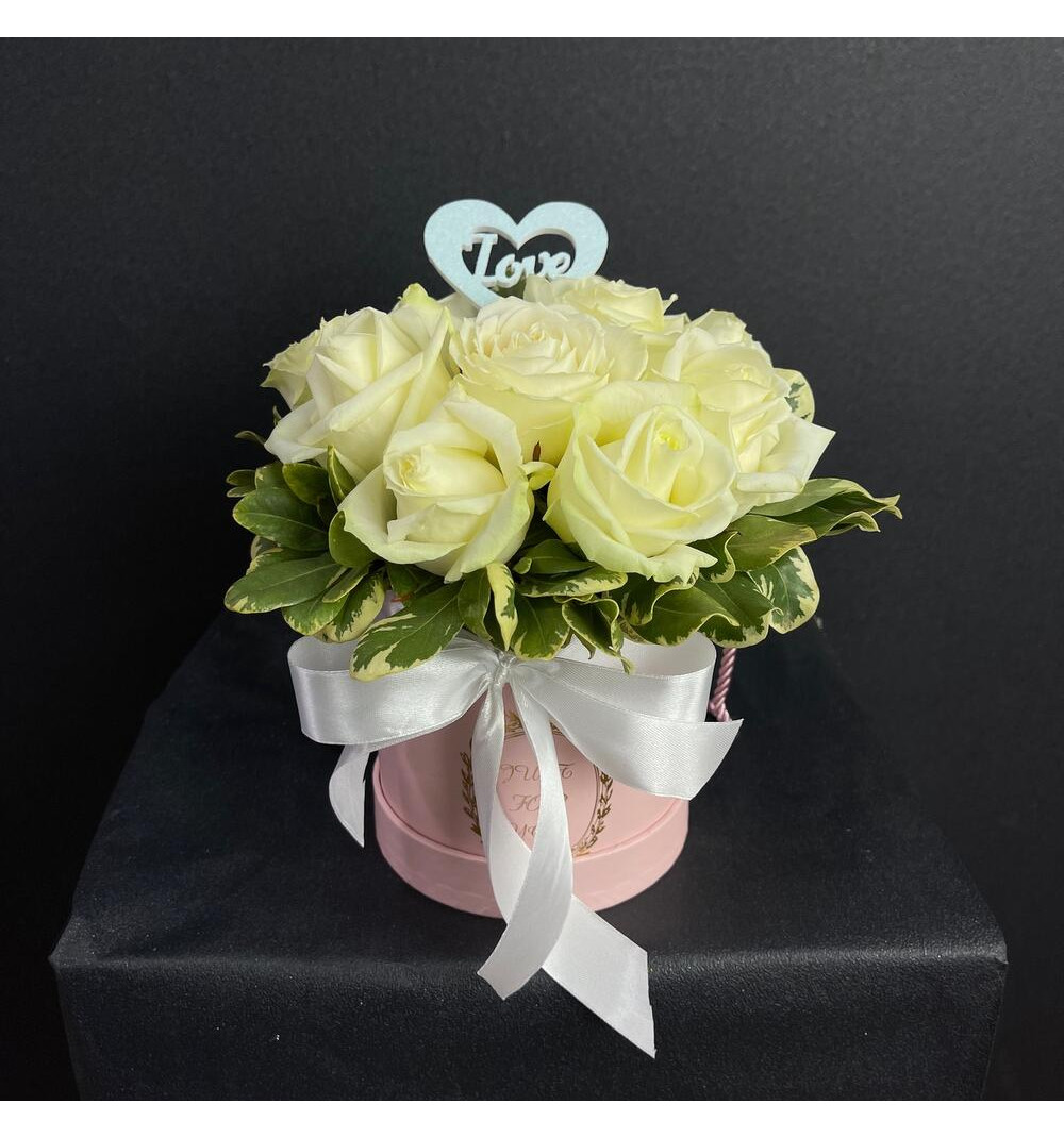 Этот великолепный букет, украсит любой особенный момент в вашей жизни. Восхитительные белые розы выглядят нежно и изысканно, создавая атмосферу чистоты и гармонии. Этот букет, аккуратно размещенный в стильной коробочке, станет замечательным подарком, который можно доставить с любовью прямо к дверям получателя.